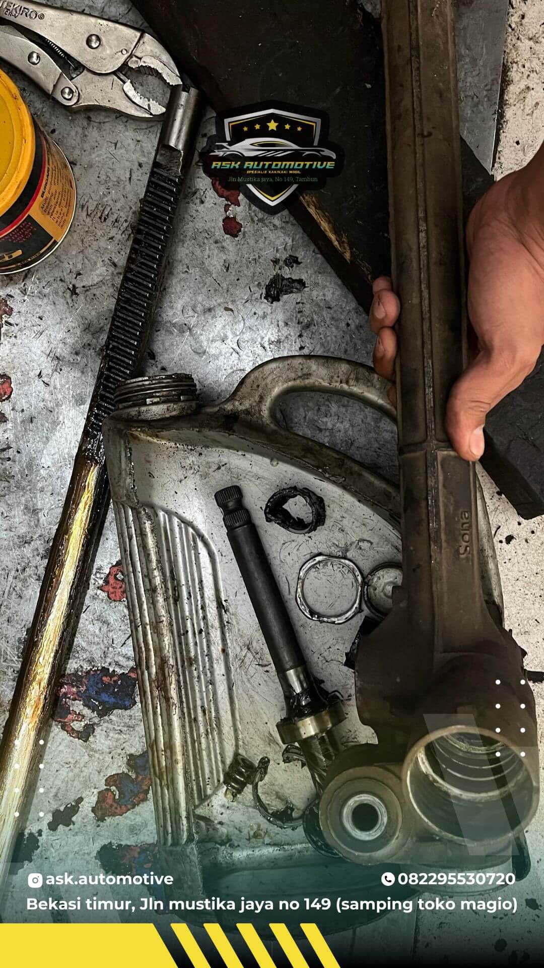 Proses perbaikan racksteer dan kaki-kaki pada Suzuki Ertiga di ASK Automotive melibatkan beberapa langkah teknis yang dirancang untuk mengatasi masalah umum seperti bunyi "gluduk-gluduk" dan setir yang terasa berat atau tidak responsif.
